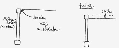 Bei der Auswahl des Regals ist zu beachten (falls man kein Ivar nimmt), dass die Regalböden auf Höhe der Seitenteile enden, so dass später keine Lücke zwischen Rückwand und Boden entsteht, die Verletzungsgefahr in sich birgt.